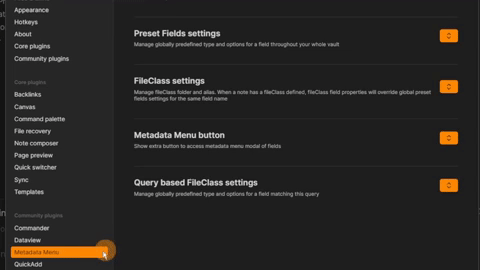 As the status and priority information is the frontmatter I can make customizing them easier with metadata menu. First I create a project class.