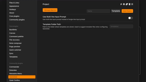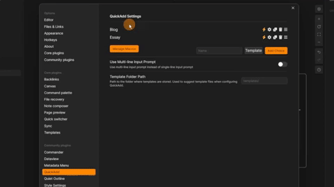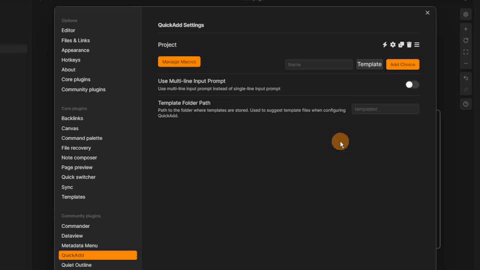 Combining the quick add plugin with commander allows for project to be created faster. First we need a quick add.